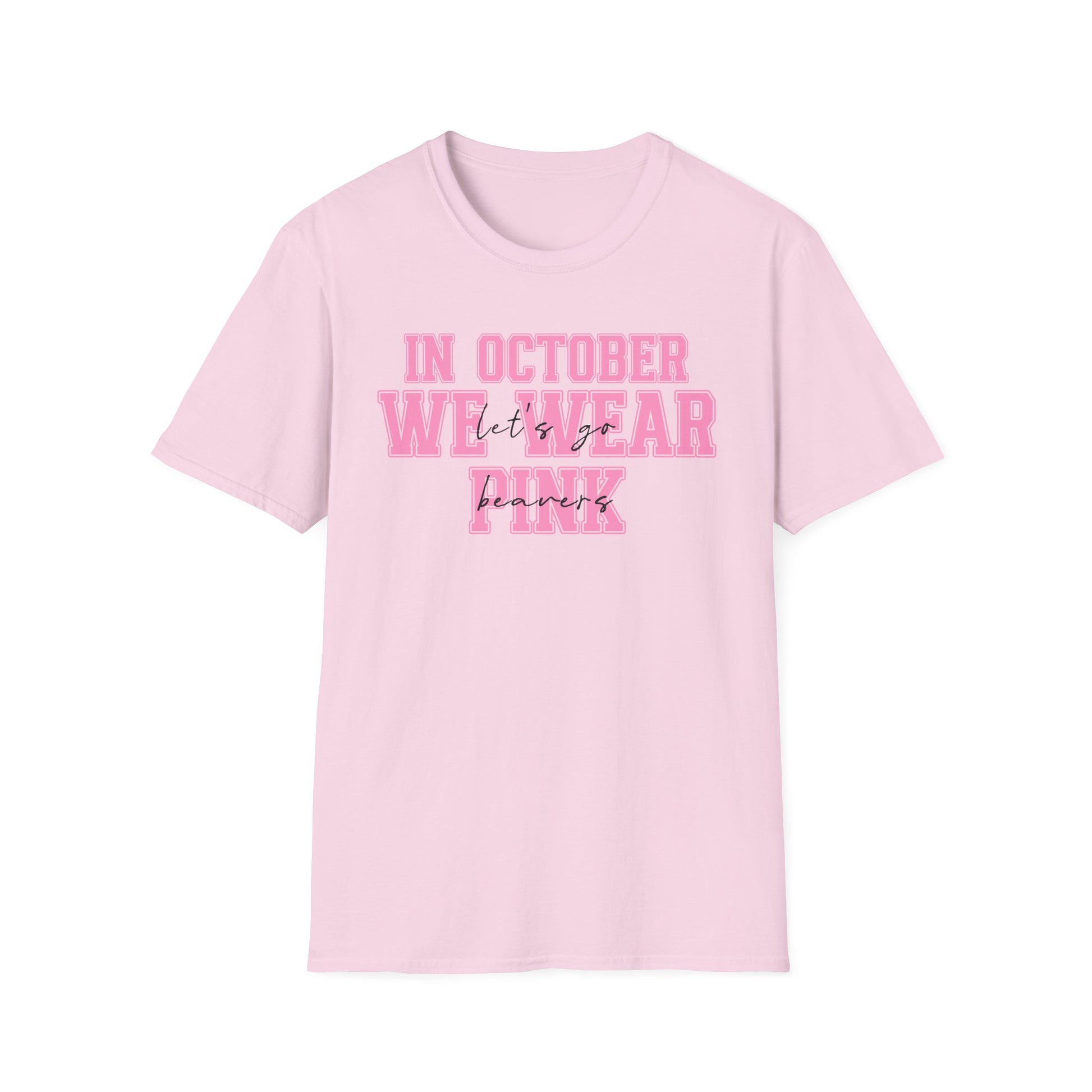 This Pink Out "We Wear Pink" tee is designed with unity in mind to support those we know who have been affected by Breast Cancer. Rep your Roots and support the cause for breast cancer awareness month. Ideal for Pink Out games to rep your school roots and support breast cancer awareness! The unisex fit and soft fabric make it comfortable to wear year-round, while the classic design can be worn for various occasions.