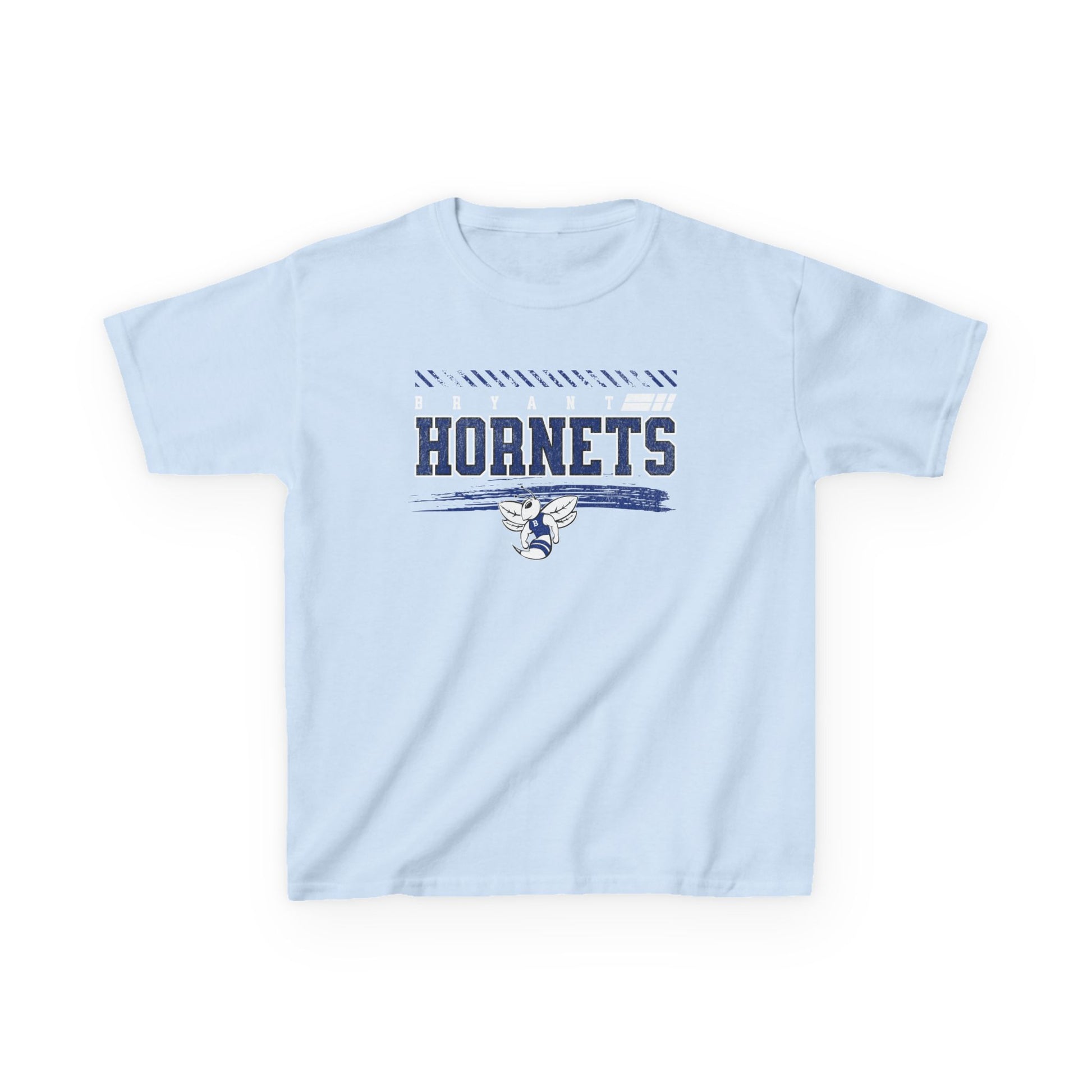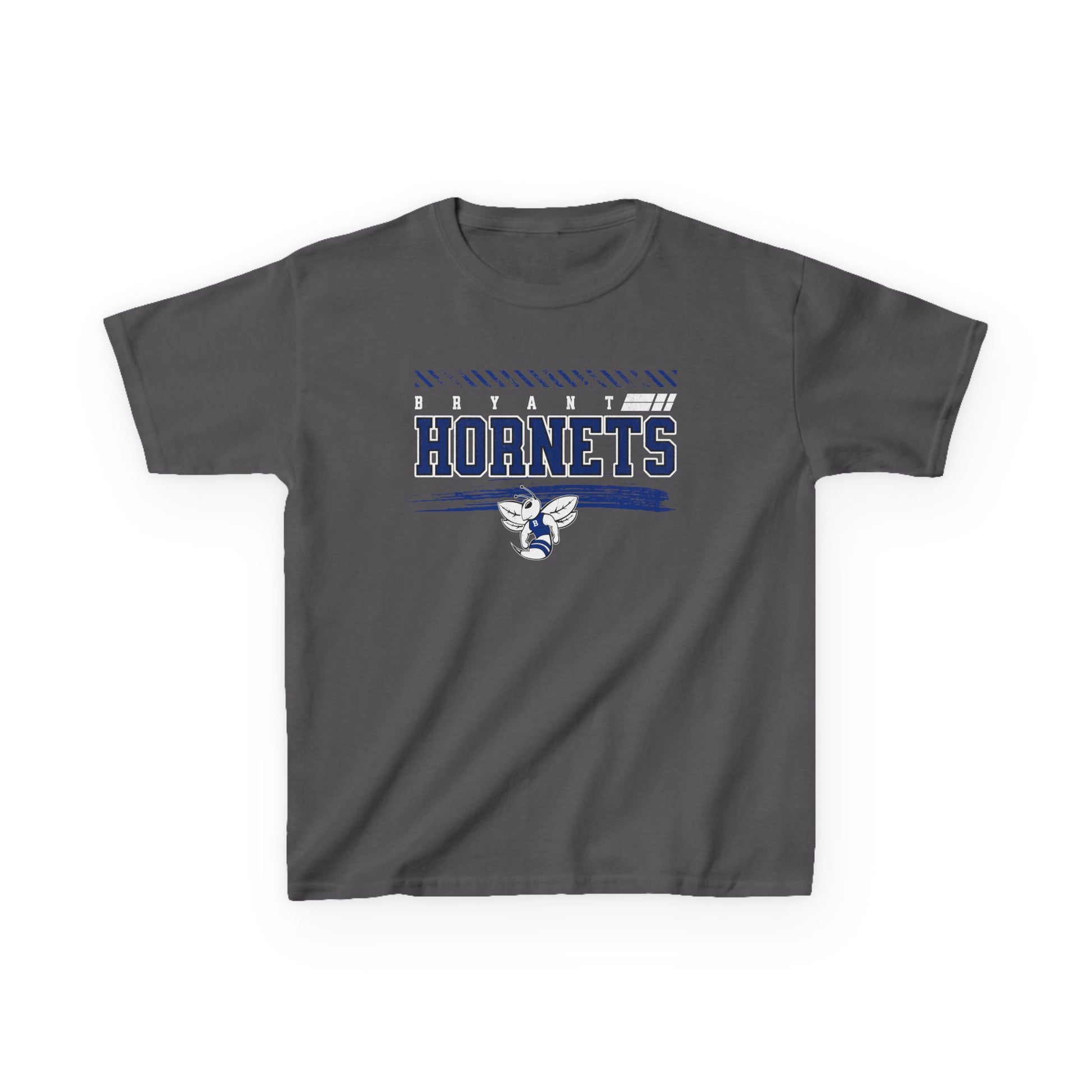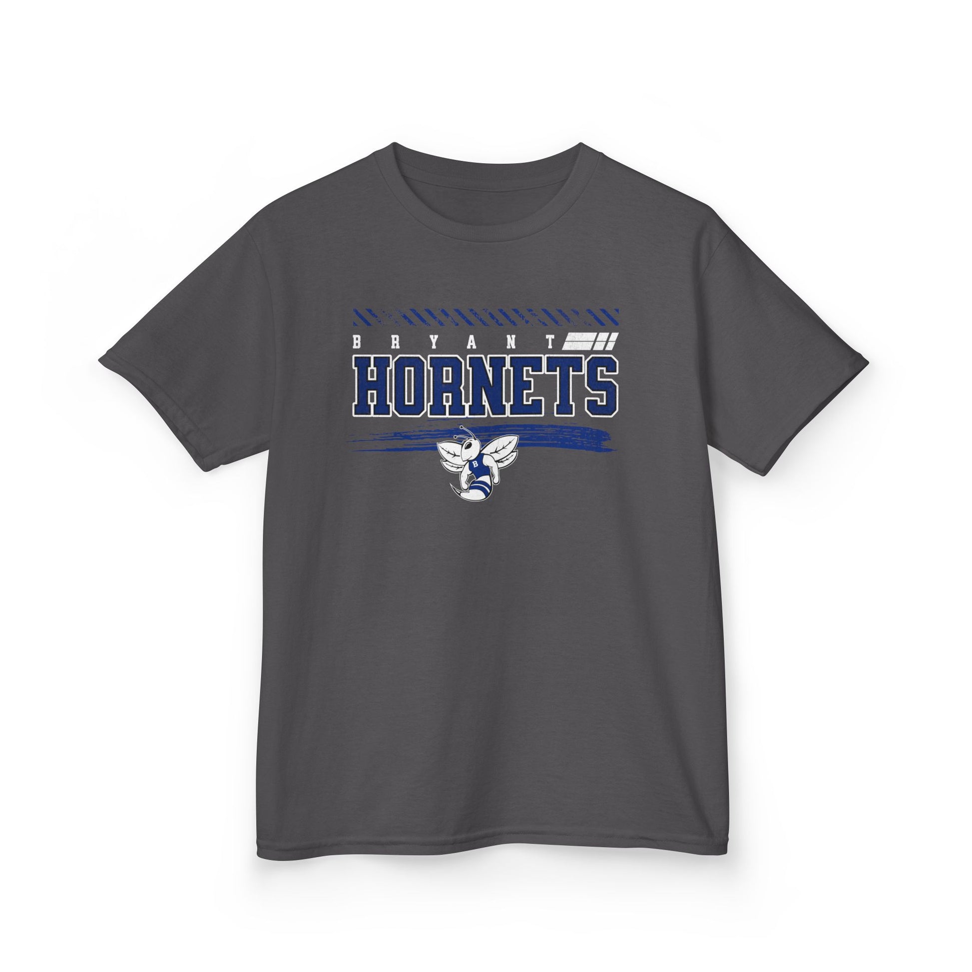 A soft, midweight kids tee designed for everyday play and school spirit. The classic crew neckline and straight, timeless fit give this shirt a familiar, comfy feel that kids move in easily. The front sports a bold “HORNETS” graphic with a small hornet mascot—crisp DTF/DTG printing keeps the colors clear and durable through washes. Thoughtful details like a ribbed collar, shoulder tape for shape retention, and a tear-away label mean no scratchy distractions during recess. Ethically sourced US cotton and Oeko-Tex certification add quiet reassurance for parents while the tubular knit construction gives a clean, seamless look.