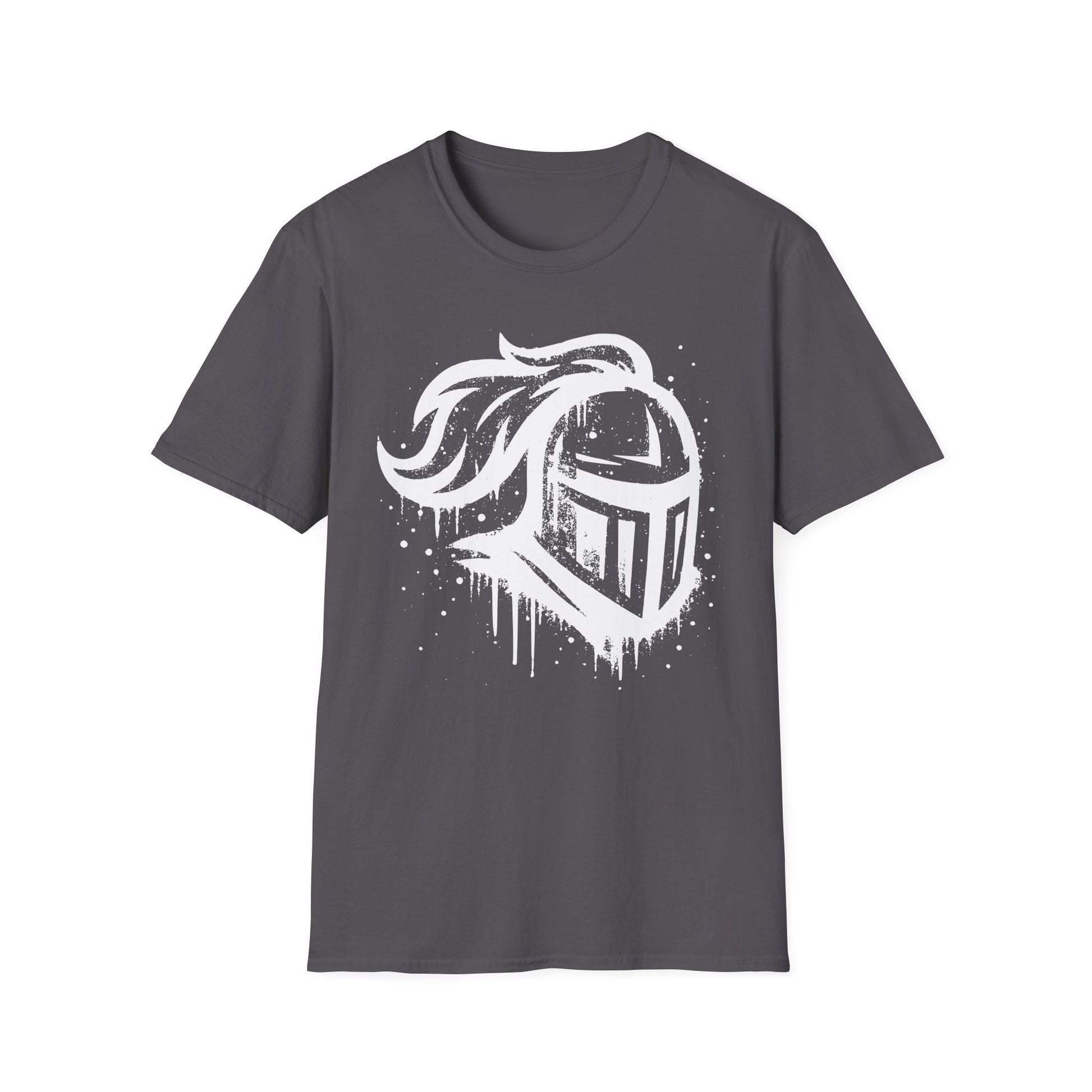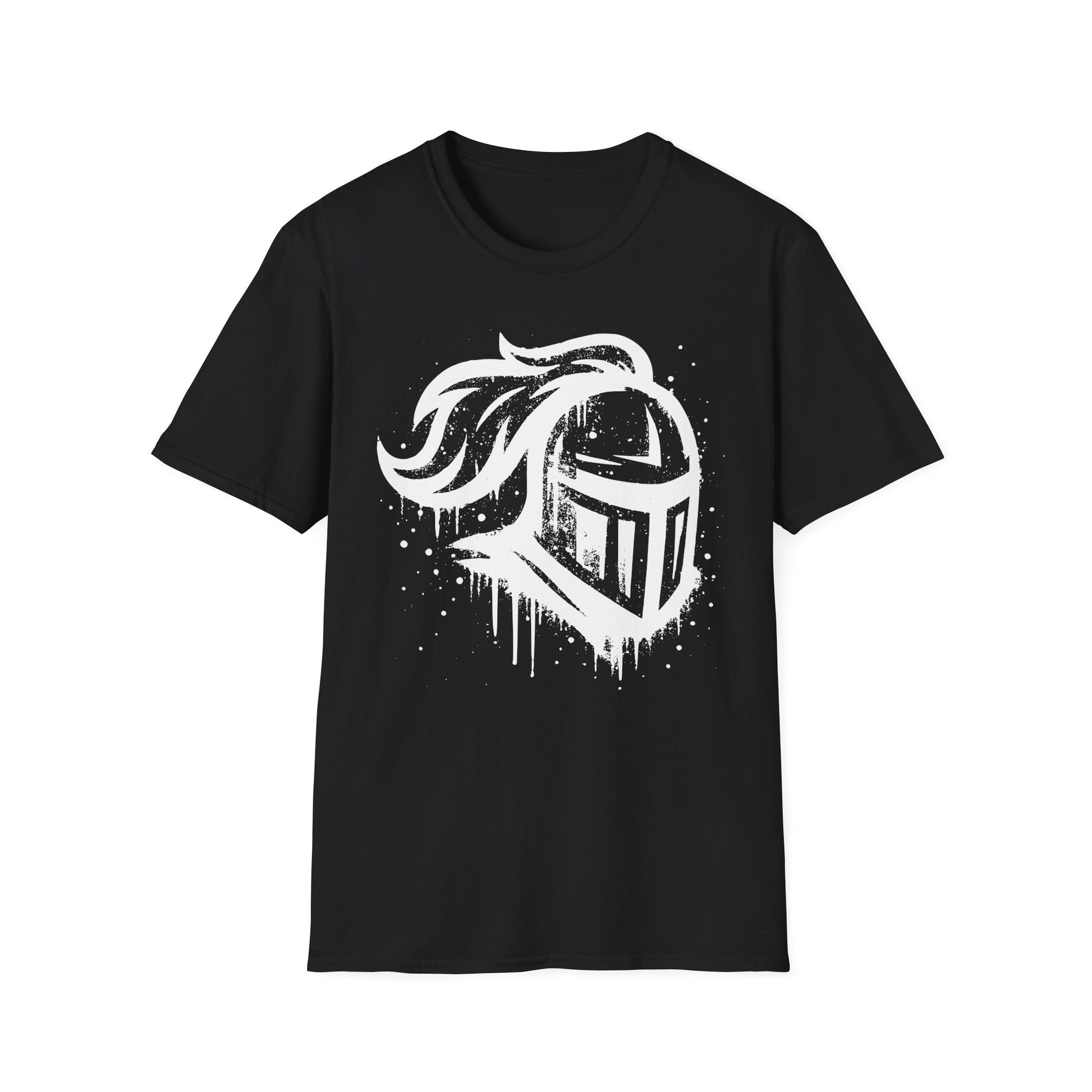 A soft and durable unisex T-Shirt featuring a bold Knight Logo in a paint drip style. This versatile t-shirt is made from ethically grown and harvested US cotton, making it lightweight and comfortable to wear. With its classic fit and crew neckline, this shirt can be worn on any occasion, whether it's formal or semi-formal. Perfect for adults looking for a stylish and comfortable wardrobe staple.