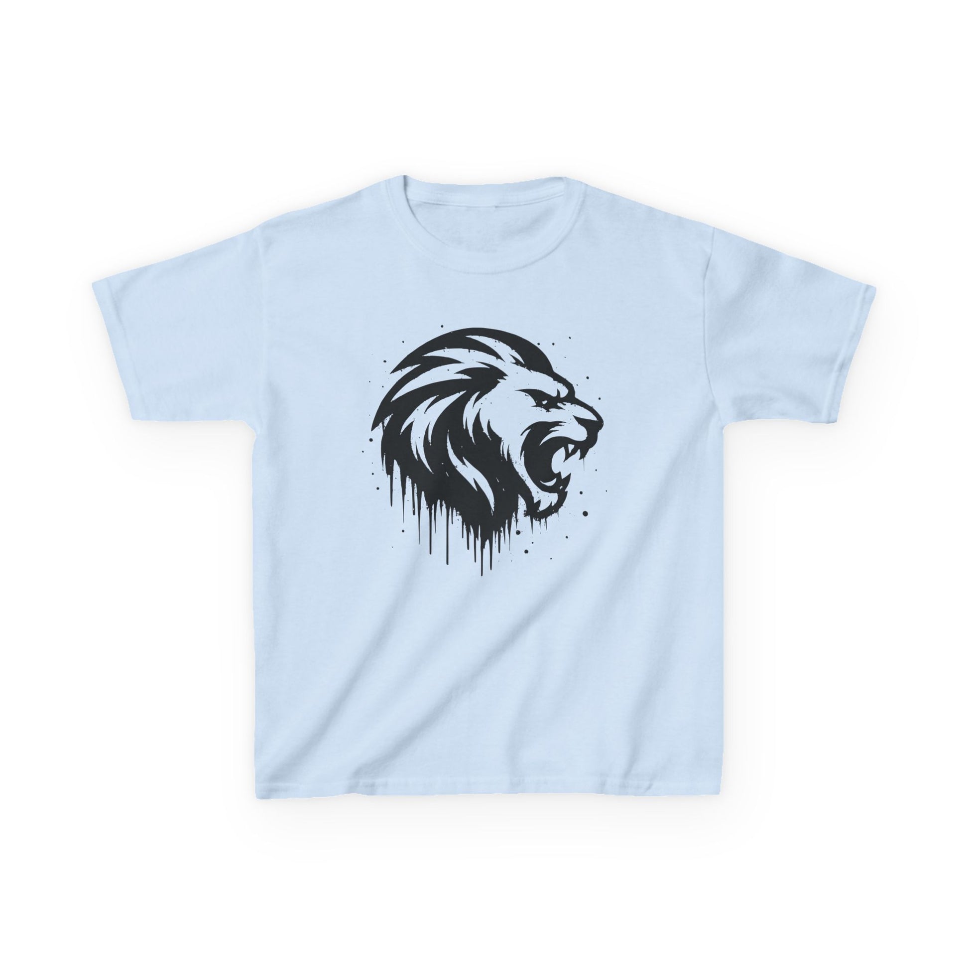 A soft and durable unisex T-Shirt featuring a bold Lions Logo in a paint drip style. This versatile t-shirt is made from ethically grown and harvested US cotton, making it lightweight and comfortable to wear. With its classic fit and crew neckline, this shirt can be worn on any occasion, whether it's formal or semi-formal. Perfect for kids looking for a stylish and comfortable wardrobe staple.