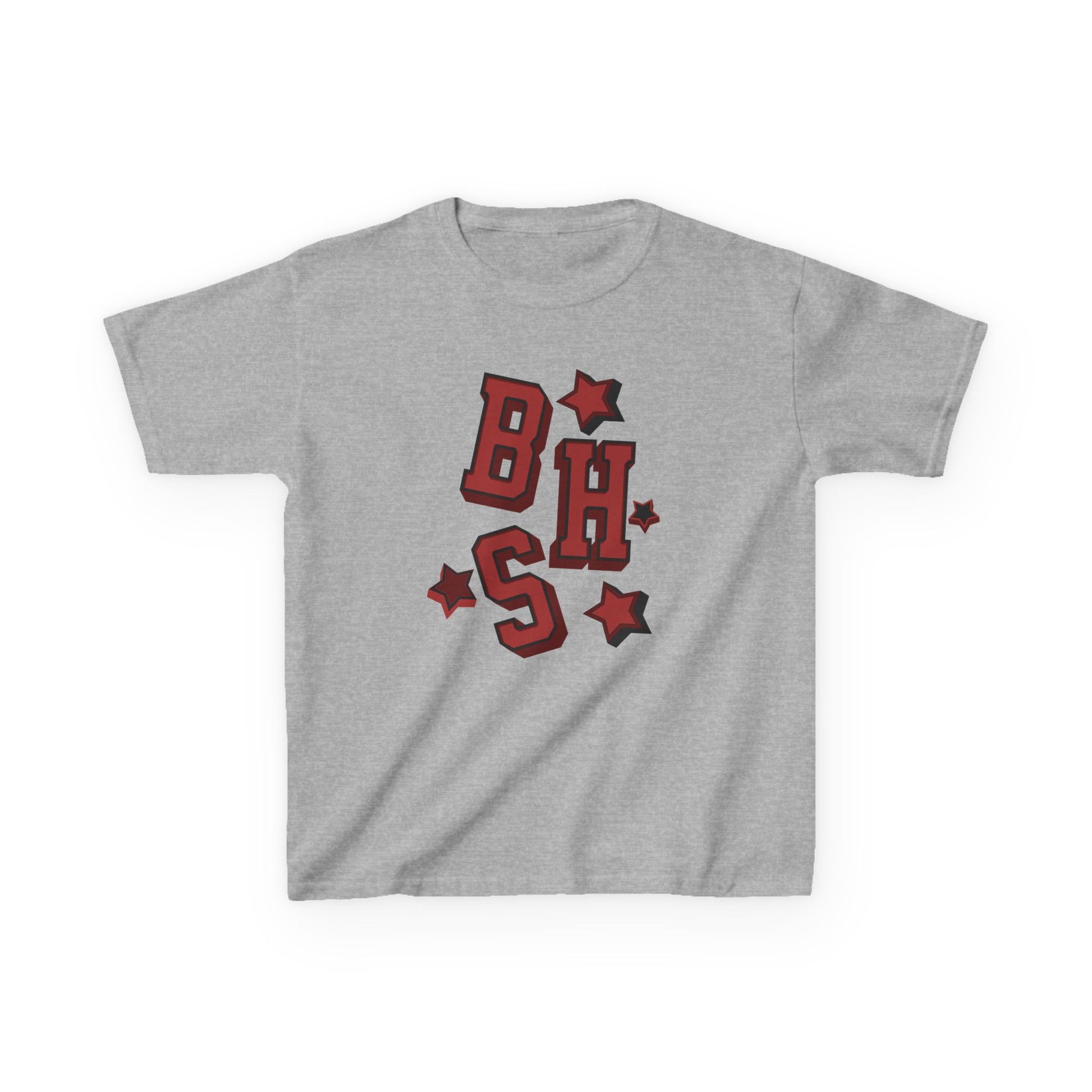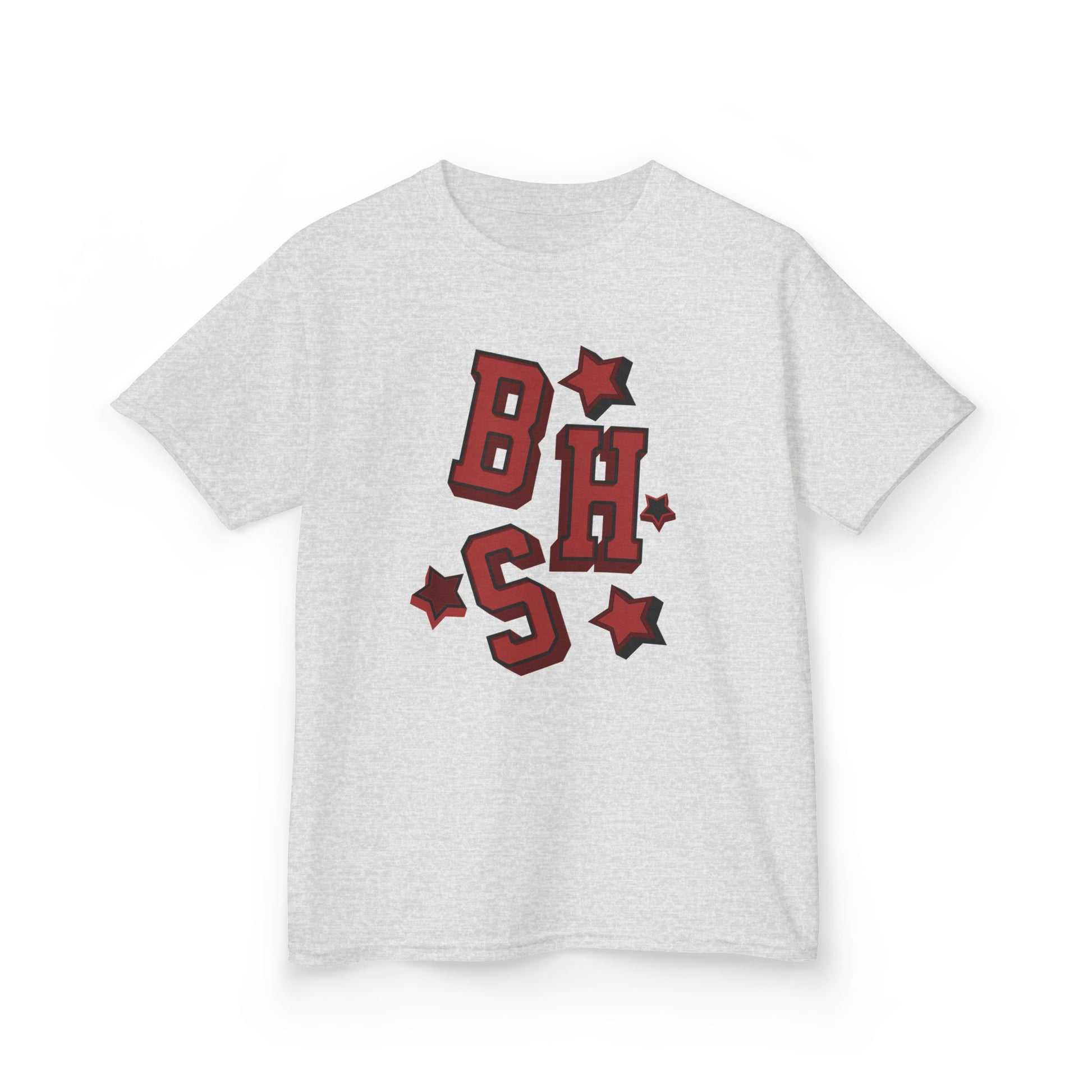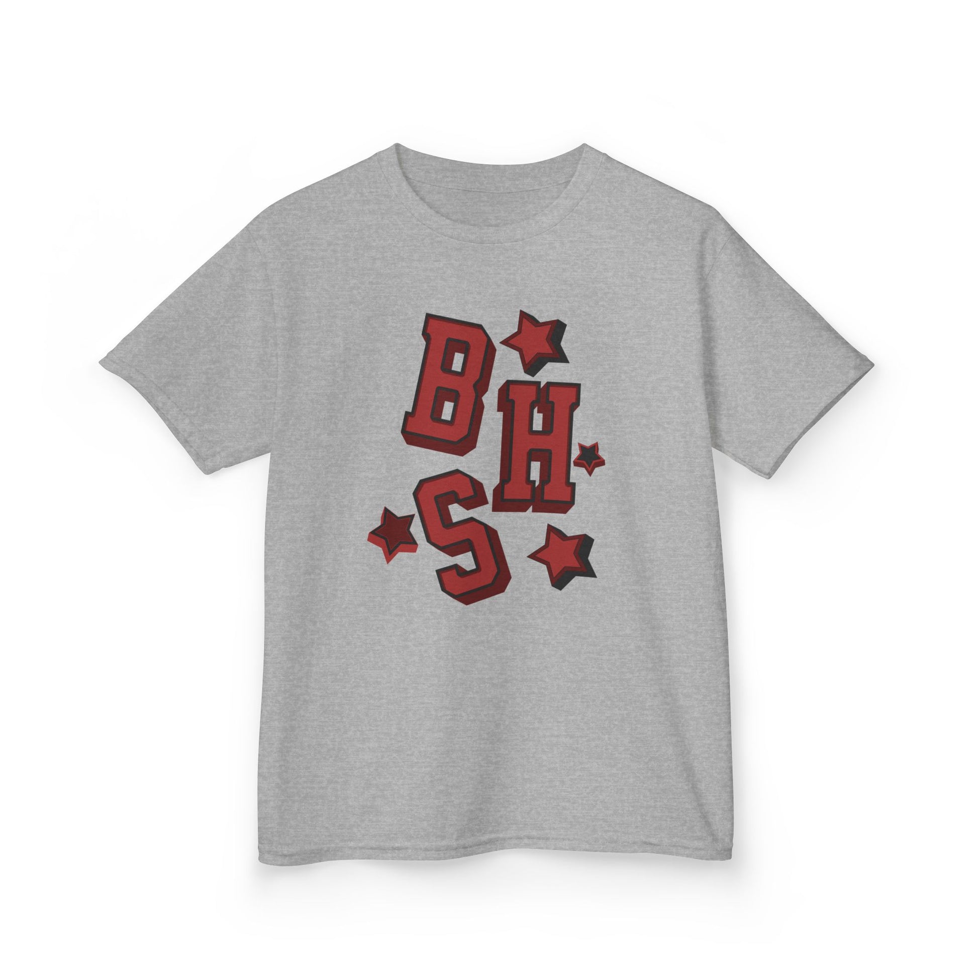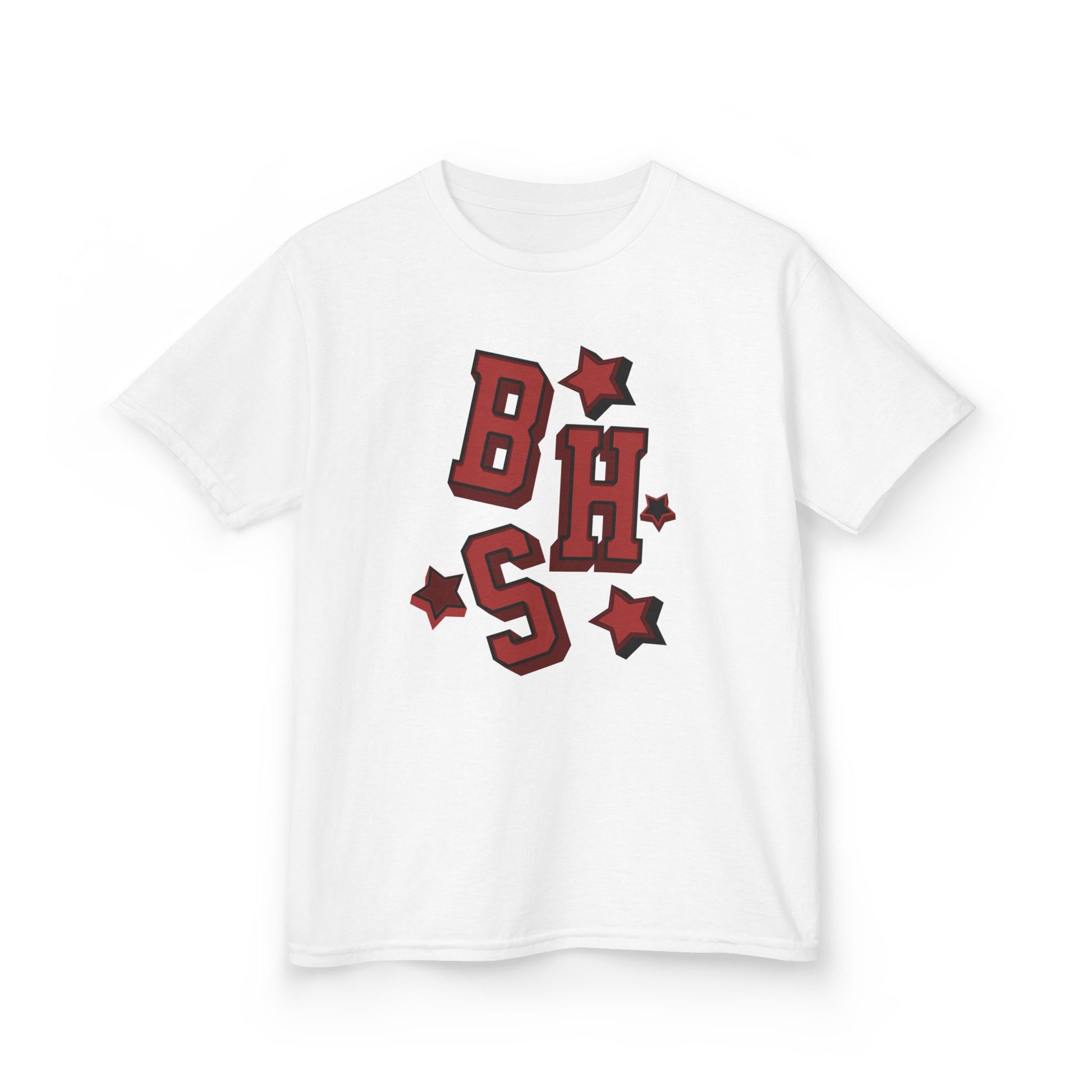 This soft midweight kids tee brings playful, varsity-style energy to everyday wear. Bold, block letters and scattered star accents sit at the center chest in a warm red with subtle shadowing—like a tiny team logo made just for little adventurers. The crew neckline and timeless cut make it easy to layer under jackets or wear solo during playground runs. It’s breathable, durable, and made to move with curious kids who love to climb, race, and explore their neighborhood rituals.