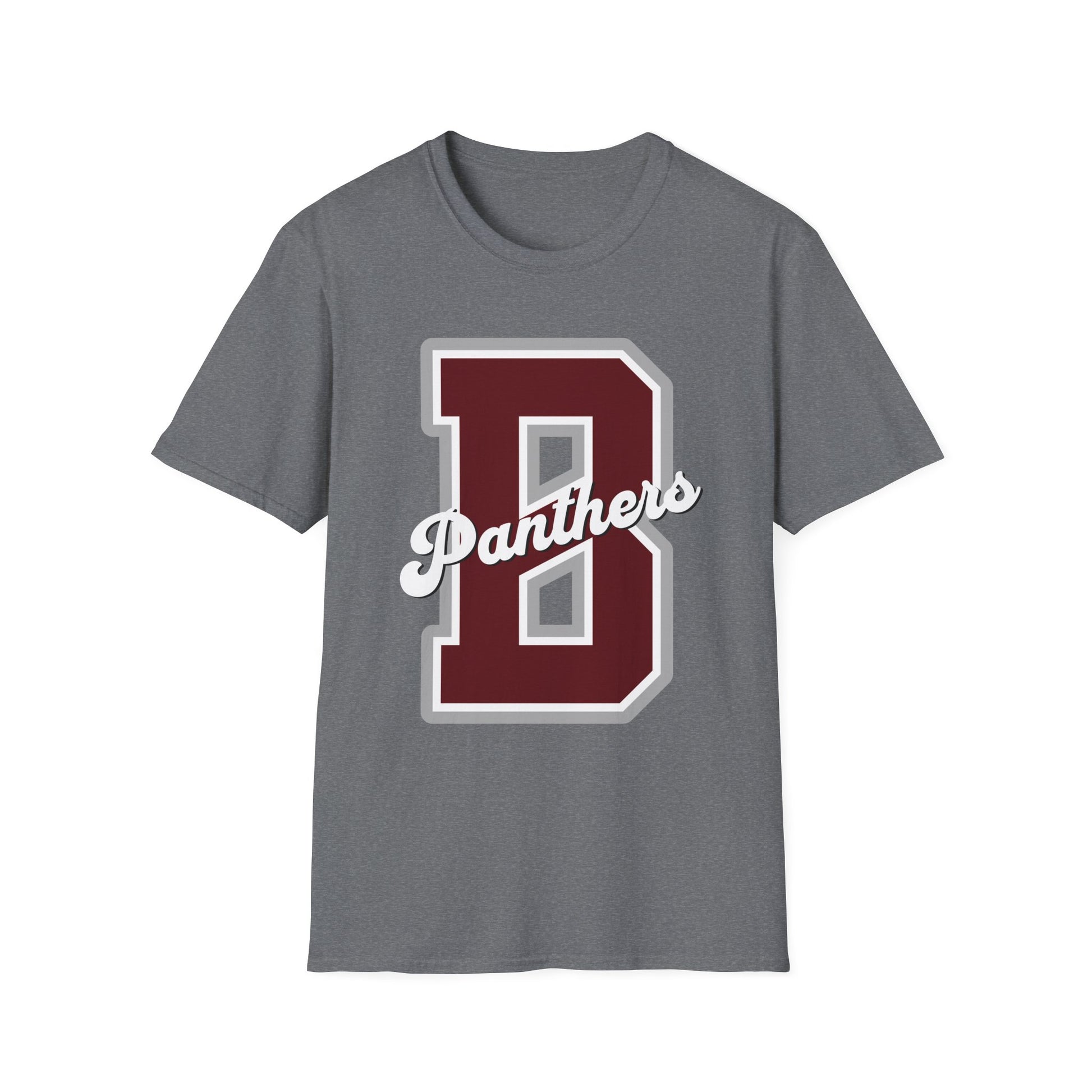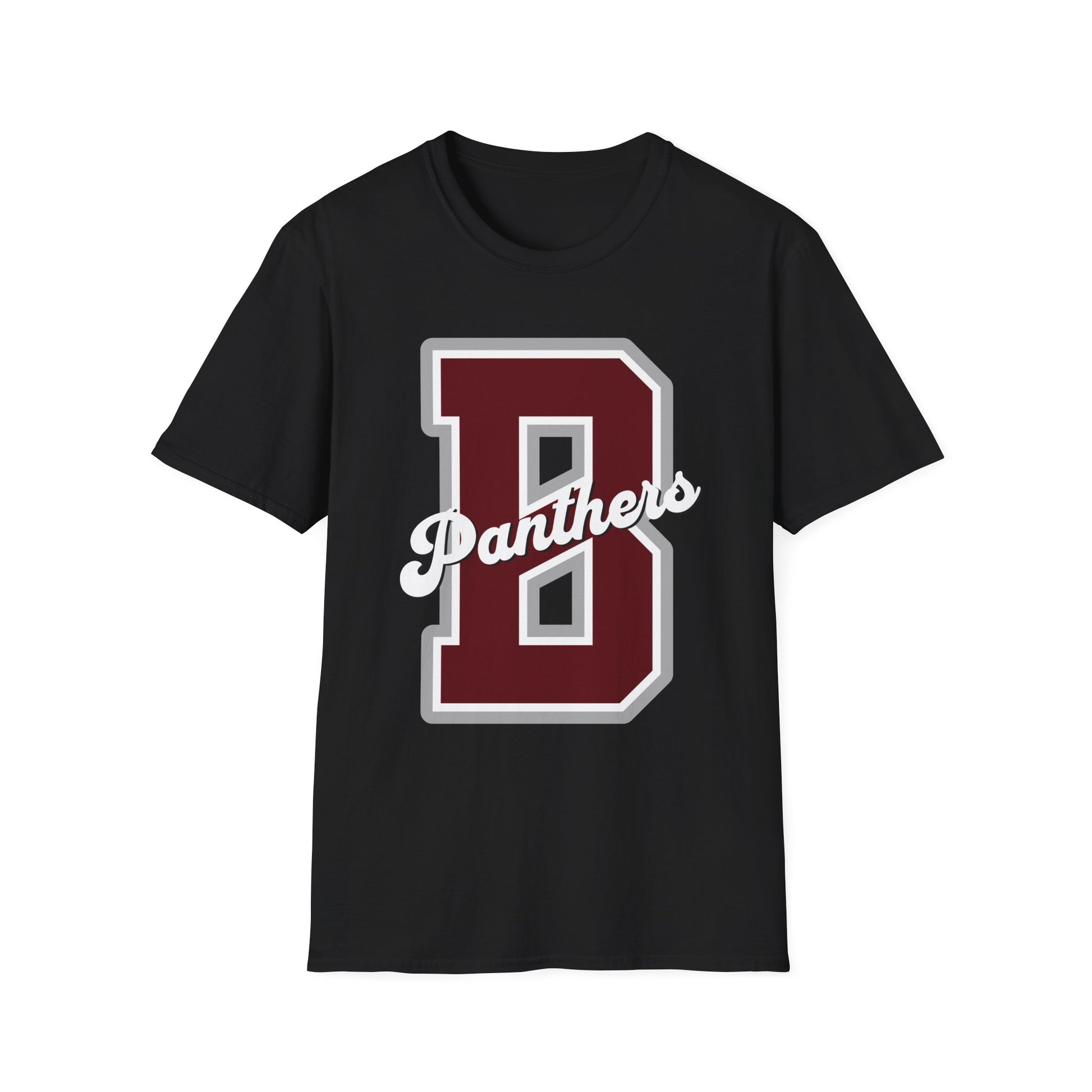 A hometown-letter tee with old-school spirit. This soft, lightweight shirt carries a bold varsity “B” and a flowing “Panthers” script across the chest, giving off that sideline energy and Friday-night rhythm. The crew neck and classic cut sit comfortably under a jacket or stand alone on warm afternoons. Wear it to root for your team, run errands, or lounge with friends — it reads like a familiar uniform, worn-in even when it’s new. The maroon-and-white letterwork pops on dark and neutral bases, while the smooth fabric keeps the print crisp and the fit effortless.