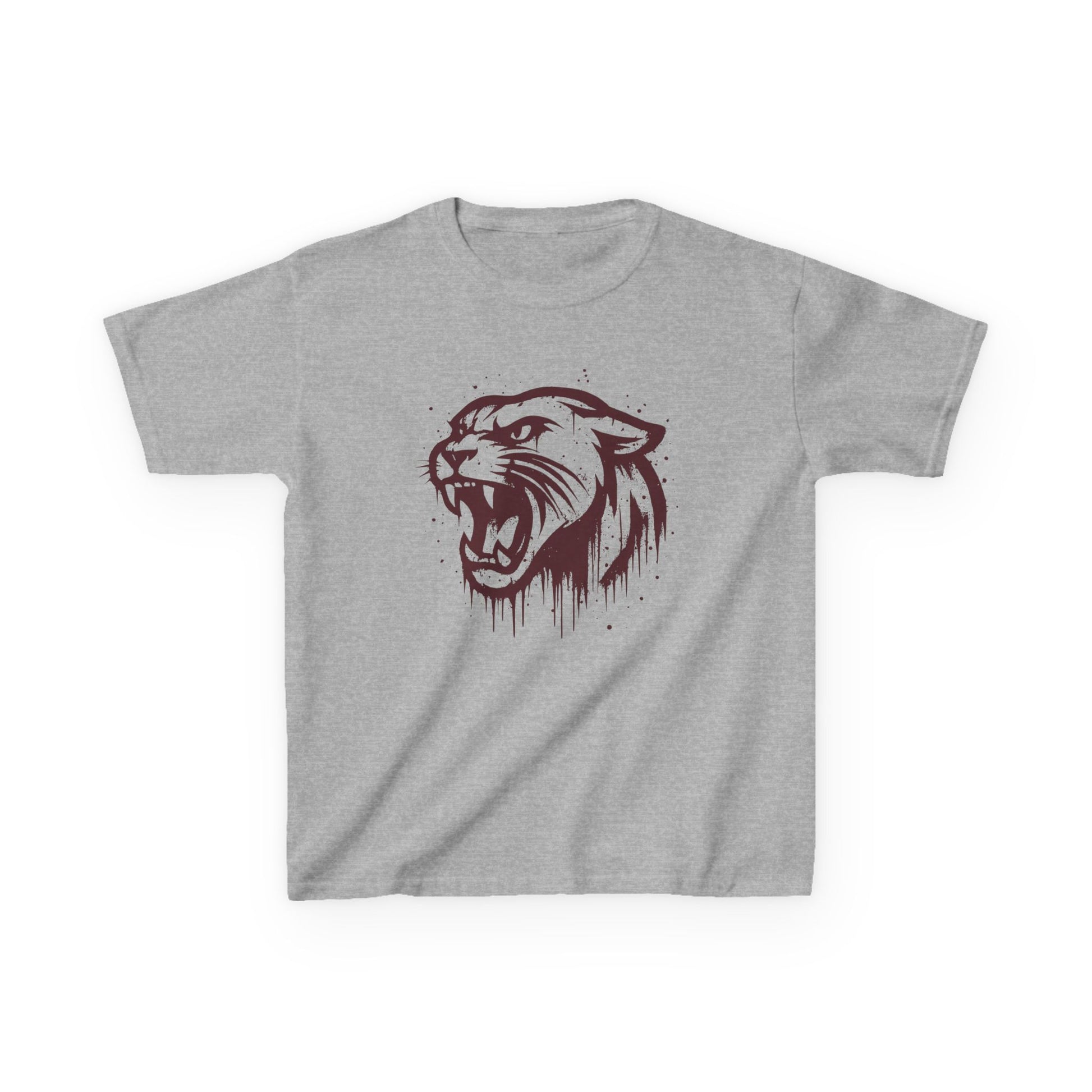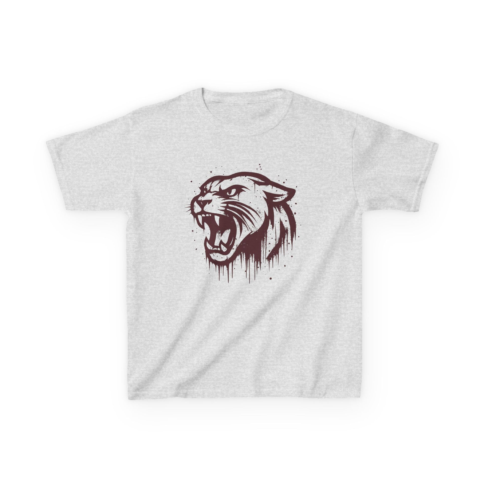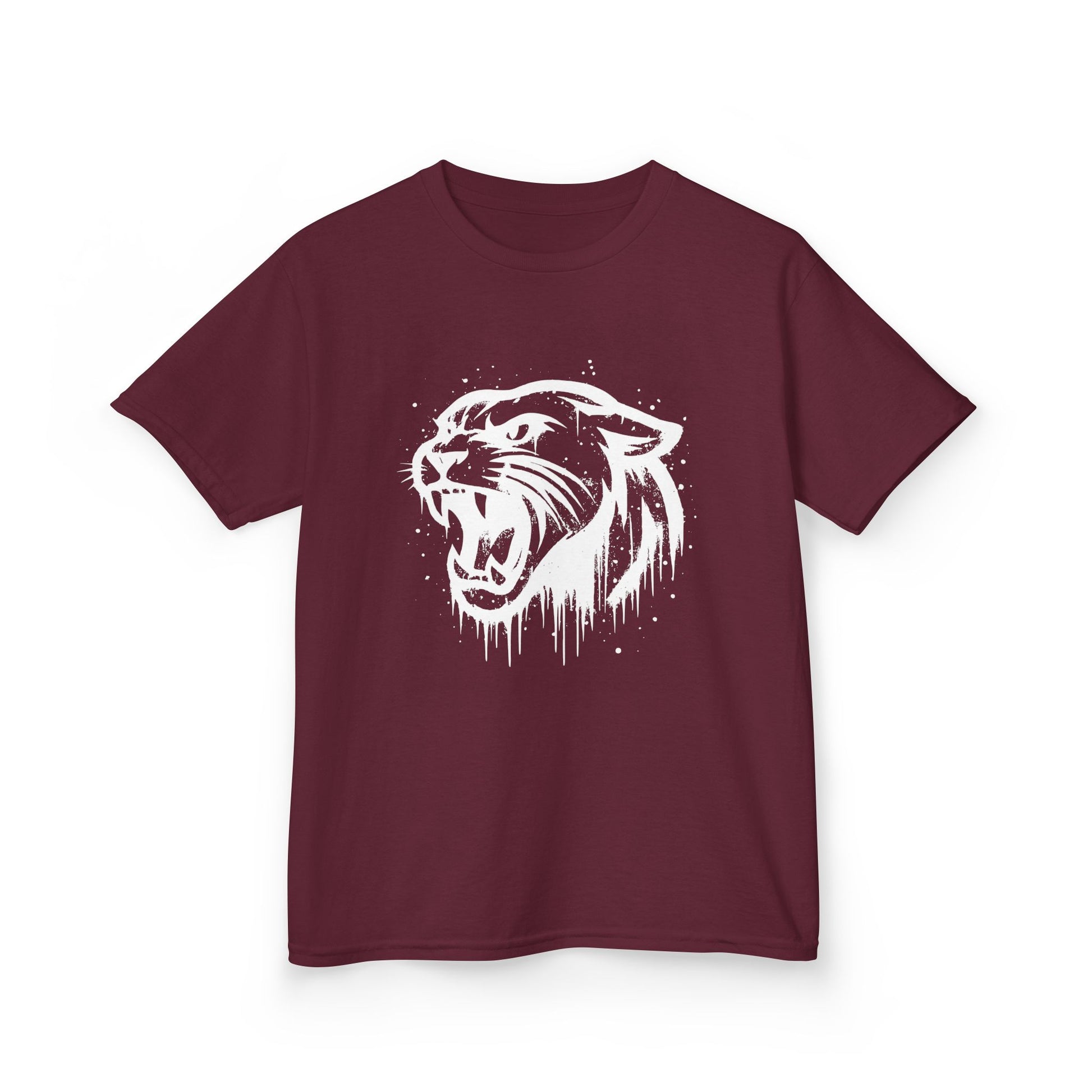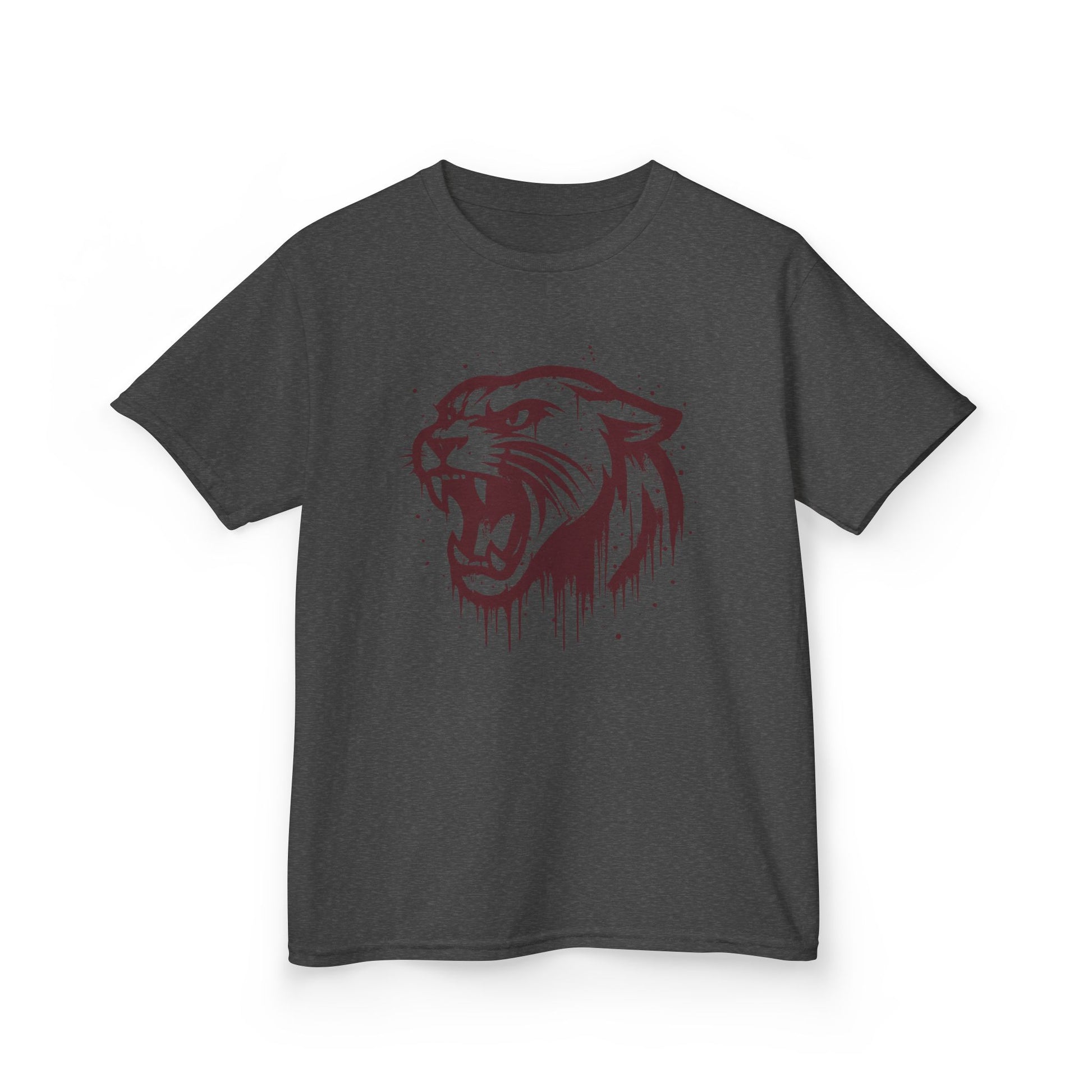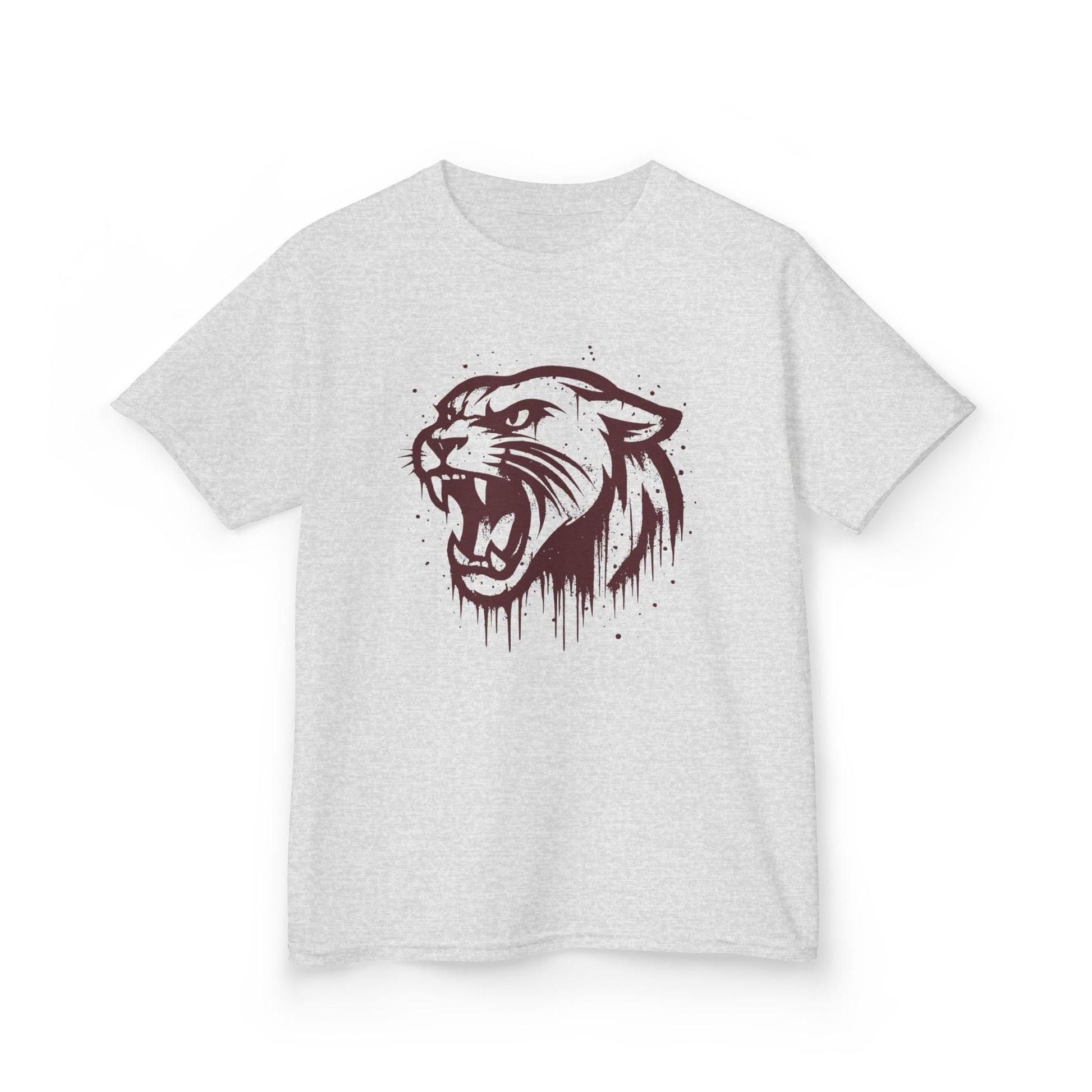 Let this youth tee roar with confidence. A midweight, soft cotton shirt printed with a bold, snarling panther head—lines that drip like ink give it an edgy, streetwise energy. It sits small and classic on a child’s frame: crew neck, short sleeves, and a clean, tubular knit body that keeps the silhouette neat after washes. Parents will notice the comfortable ribbed collar, tear-away label, and stabilized shoulders that resist stretching. Use it for backyard adventures, school spirit days, or layered under a jacket when the temperature drops—this tee brings attitude without sacrificing everyday wearability.