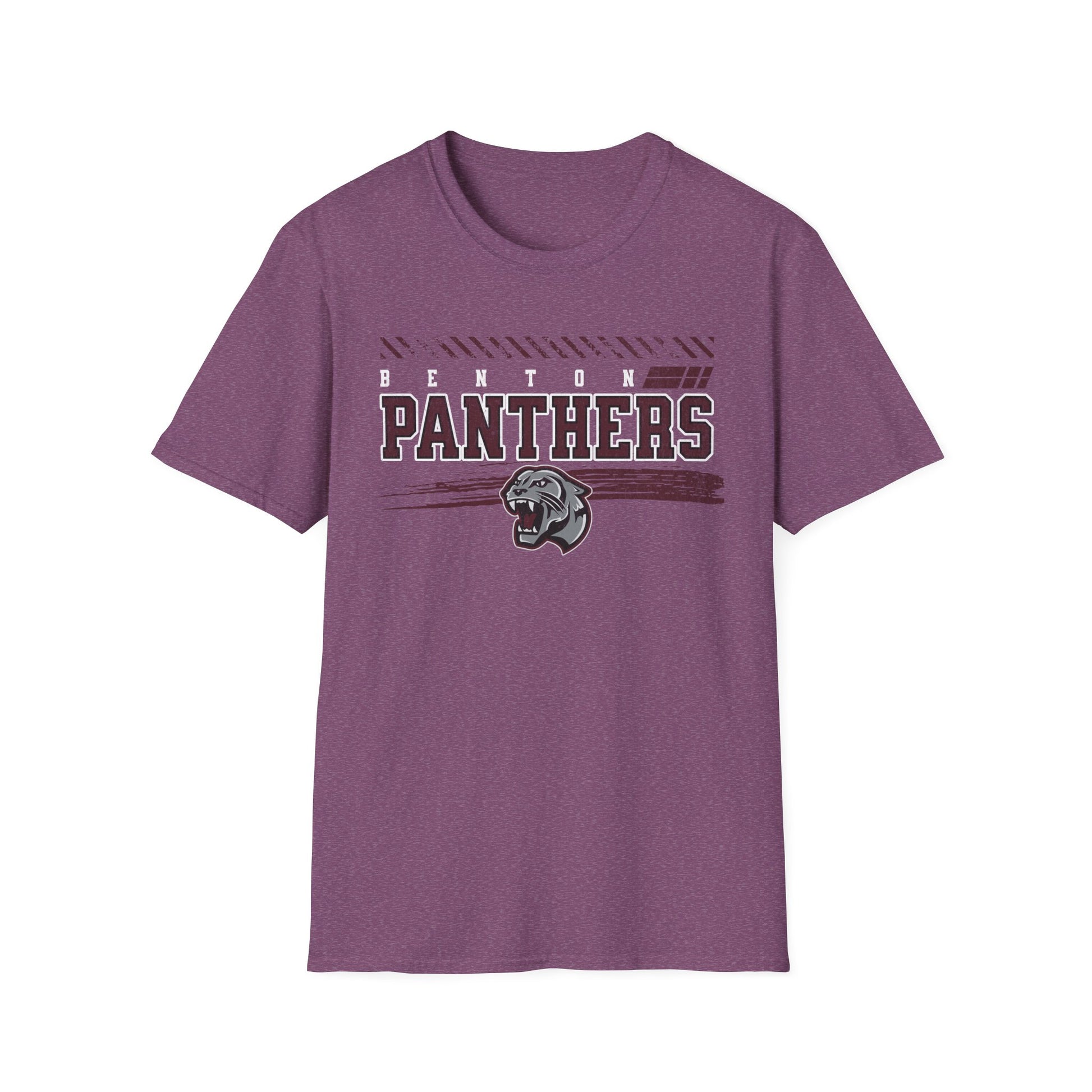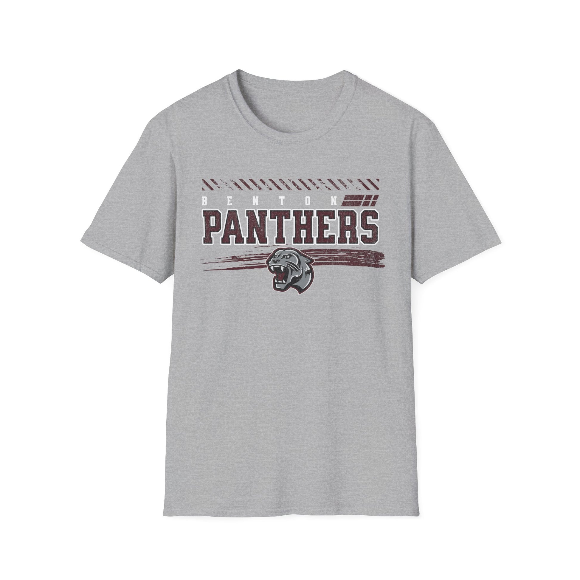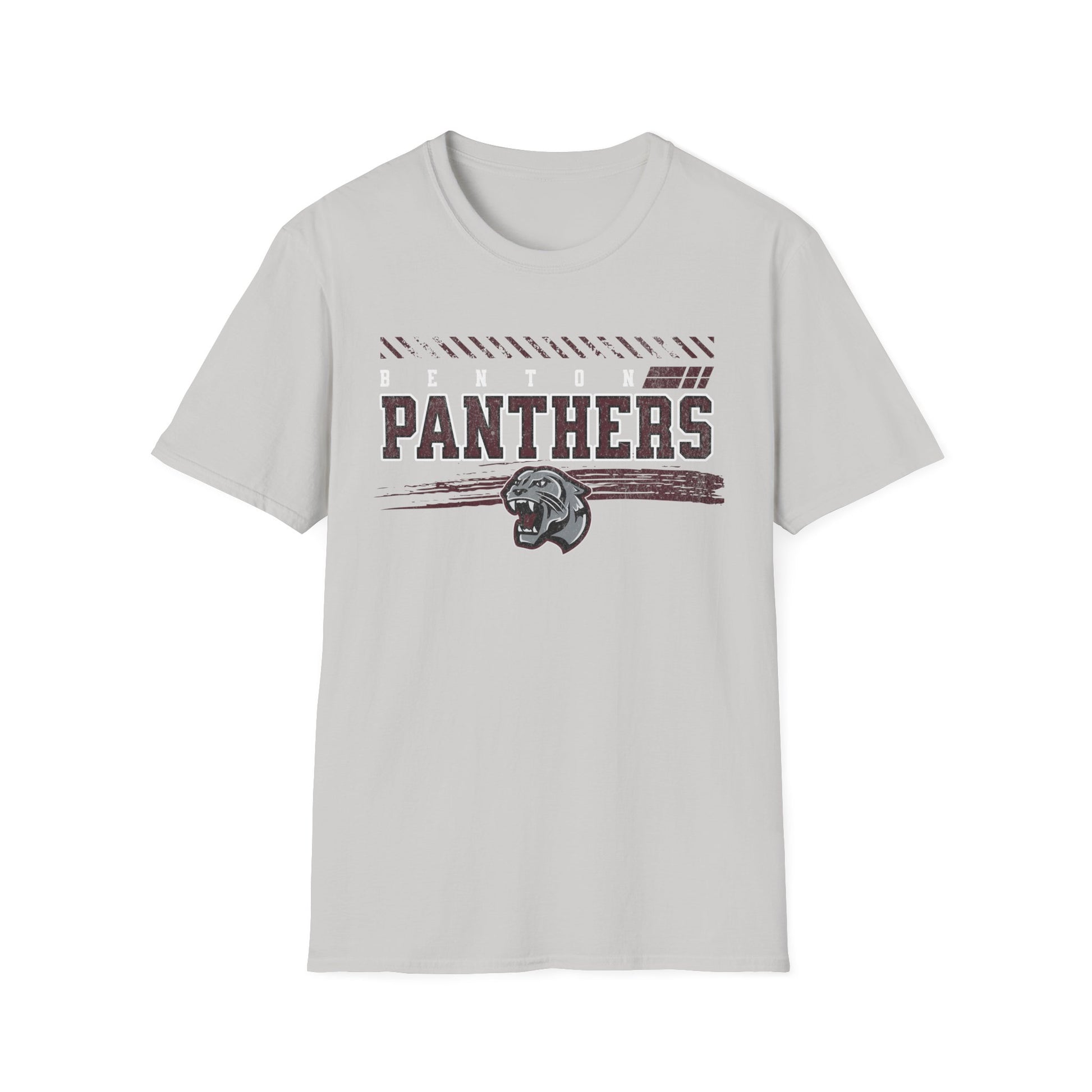 A soft, comfortable tee with a vintage sports spirit. The muted, distressed “PANTHERS” lettering and worn-in panther crest sit centered on a light neutral field, giving the shirt an authentic, road-team look without shouting. Thin horizontal accents and subtle texture details add motion and grit—like a well-loved jersey you reach for when you want to feel part of the squad. The fabric feels lightweight and breathable; the crew neckline and classic cut layer easily under jackets or wear alone at weekend games, practices, or casual meetups. It’s built to move with you and hold its shape season after season.