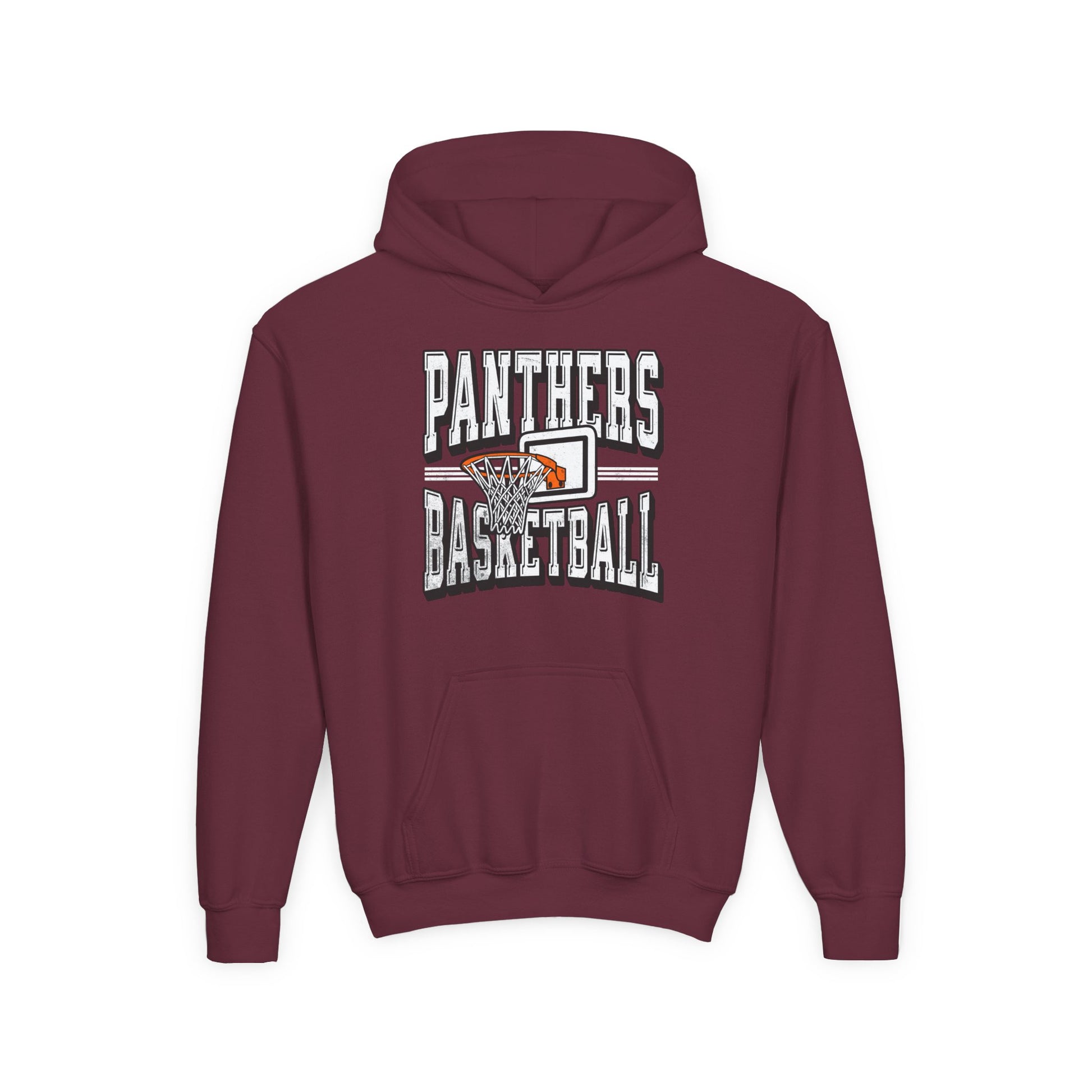 A cozy youth hoodie built for game nights and after-school practices. Soft, medium-weight fleece holds its shape while keeping young players warm on cool mornings. The front shows a bold “Panthers Basketball” design with a hoop and ball motif — a confident, team-first look that reads well from the stands. Roomy kangaroo pocket keeps hands warm and holds small essentials. Durable construction and stable necktape stand up to active kids and frequent washing, while optional chest embroidery adds a personalized team touch.